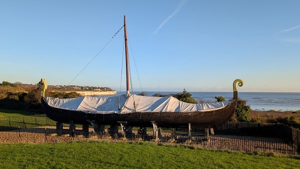 Finally, beyond the village of Pegwell, the chalk peters out. The next settlement is called Cliff’s End for a reason. There’s a replica Viking longship here, sailed across from Denmark in 1949, commemorating the landing of Saxon chiefs Hengist and Horsa 1500 years before, in what would have been one of the first concerted migrations from continental Europe post the Roman withdrawal.